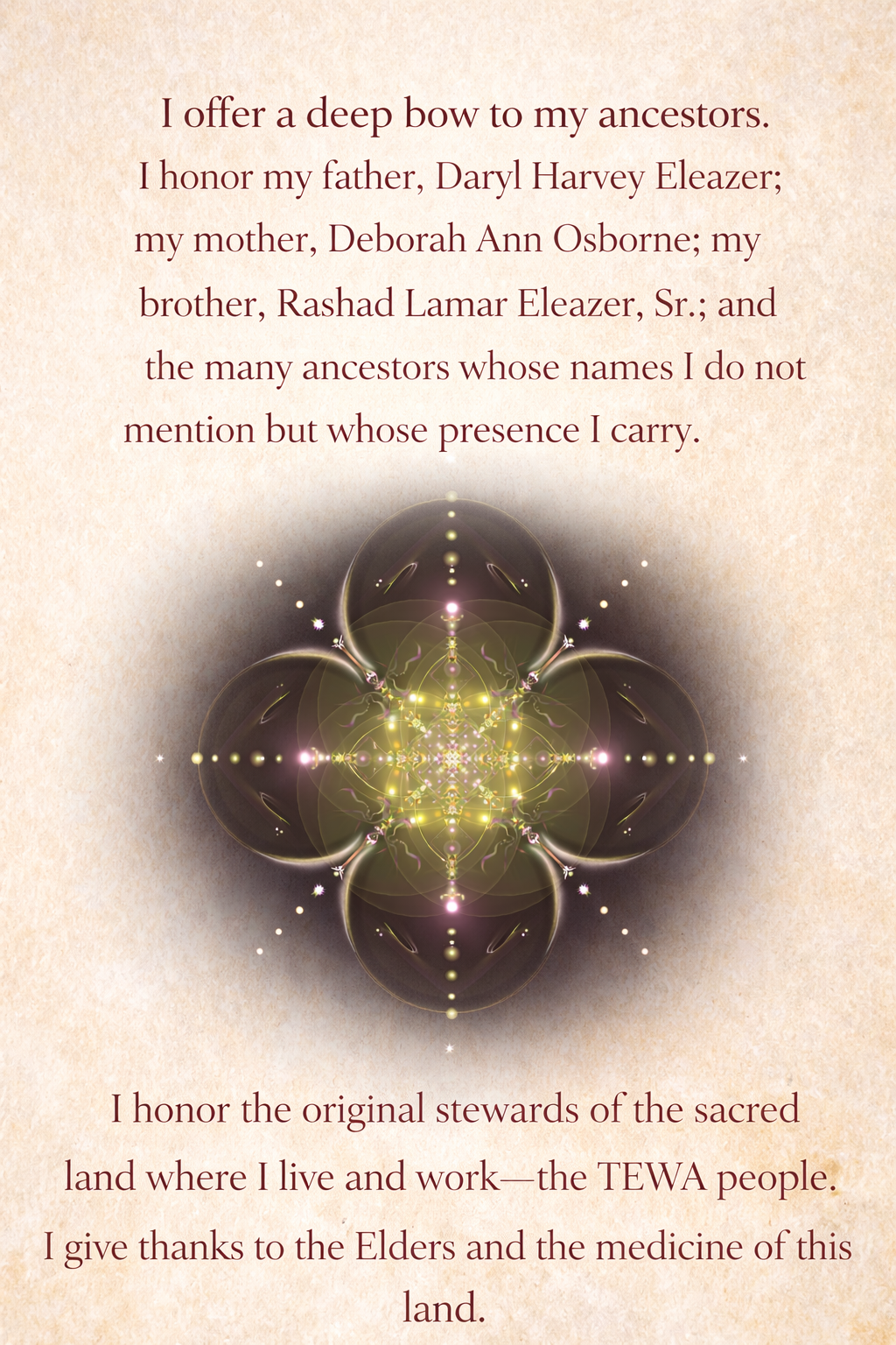 I Stand on the Shoulders of My Art Therapy Ancestors: Dr. Lucille Venture, Dr. Sarah McGee, Georgette Seabrooke Powell, Cliff Joseph, and Chantel Lumpkin—your work continues to guide and ground my own.